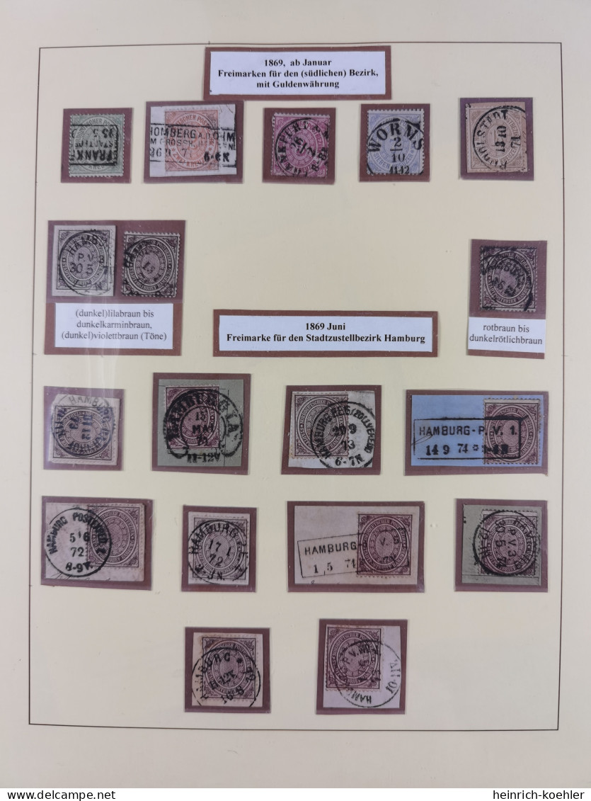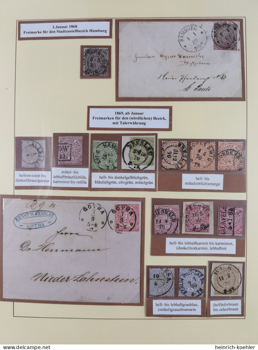 - Blatt 16 und Blatt 32 aus dem Exponat "NORDDEUTSCHER POSTBEZIRK 1868-1871" von Jørgen Kluge, Dänemark