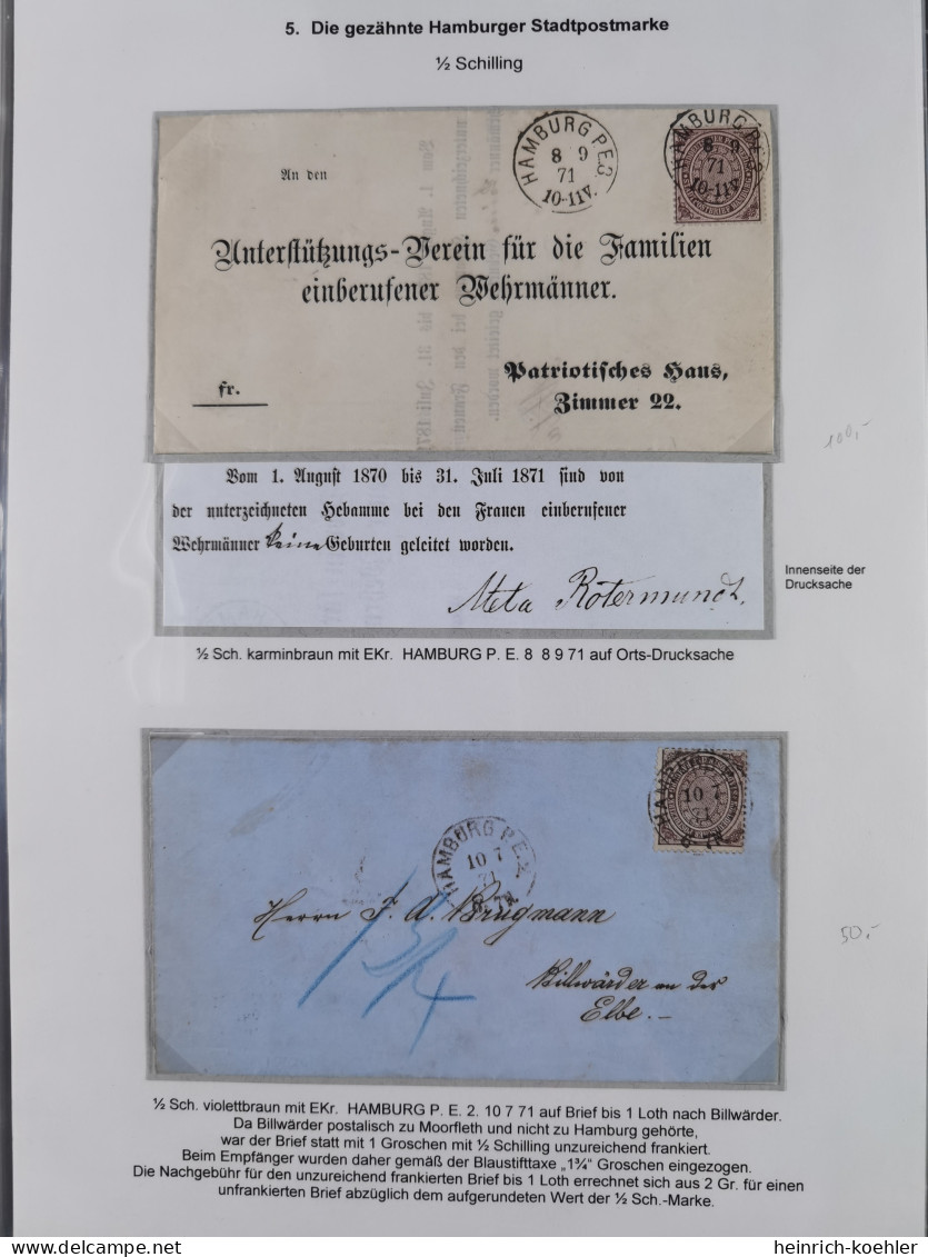 Eine Besonderheit des Norddeutschen Postbezirk und noch bis Ende 1874 der deutschen Reichspost sind die beiden Ausgaben der Hamburger Stadtpostmarke (NDP MiNrm 12 und 24).