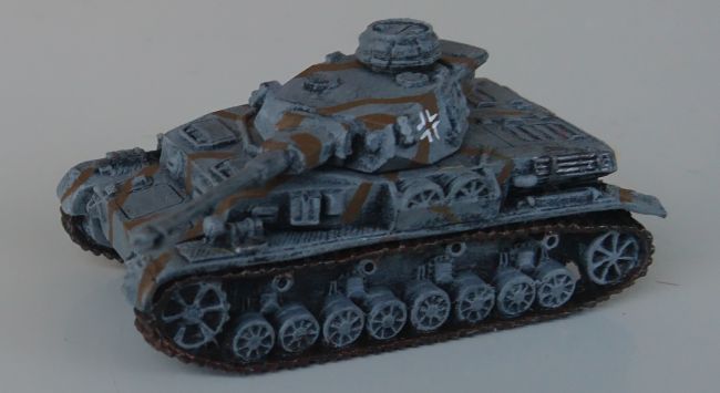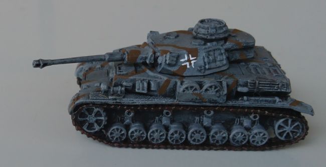 Dieser Panzer IV in der mittleren Version habe ich versucht auf die selbe Art zu bemalen wie die meisten bisherigen Fahrzeuge. Leider ist mir das Balkenkreuz deutlich misslungen.