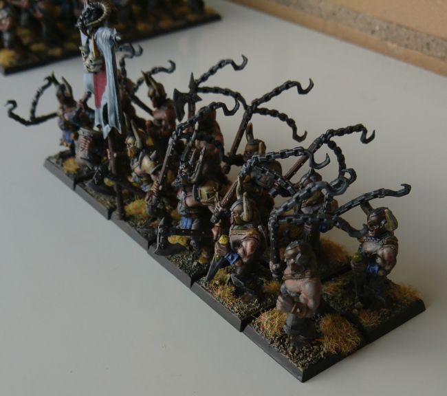 Das ich genug Barbaren hatte, habe ich mich entschieden die Einhandflegel (9x) aus dem Regiment zu entfernen und durch Zweihandflegel zu ersetzten.Also wurden entsprechend neun neue Figuren gebastelt und bemalt.