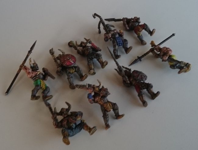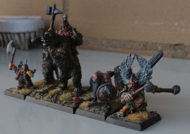 Hier die vorletzten Minis für dieses Jahr bei der Barbarenarmee. Ein Zwerg auf einem Bären für die Zwergeneinheit und die Crew für das Chaosmammut.