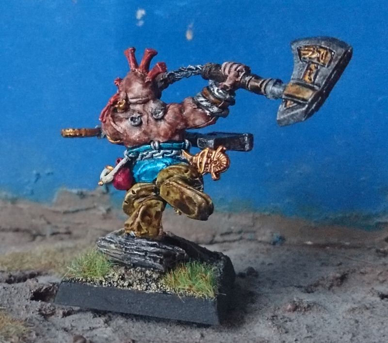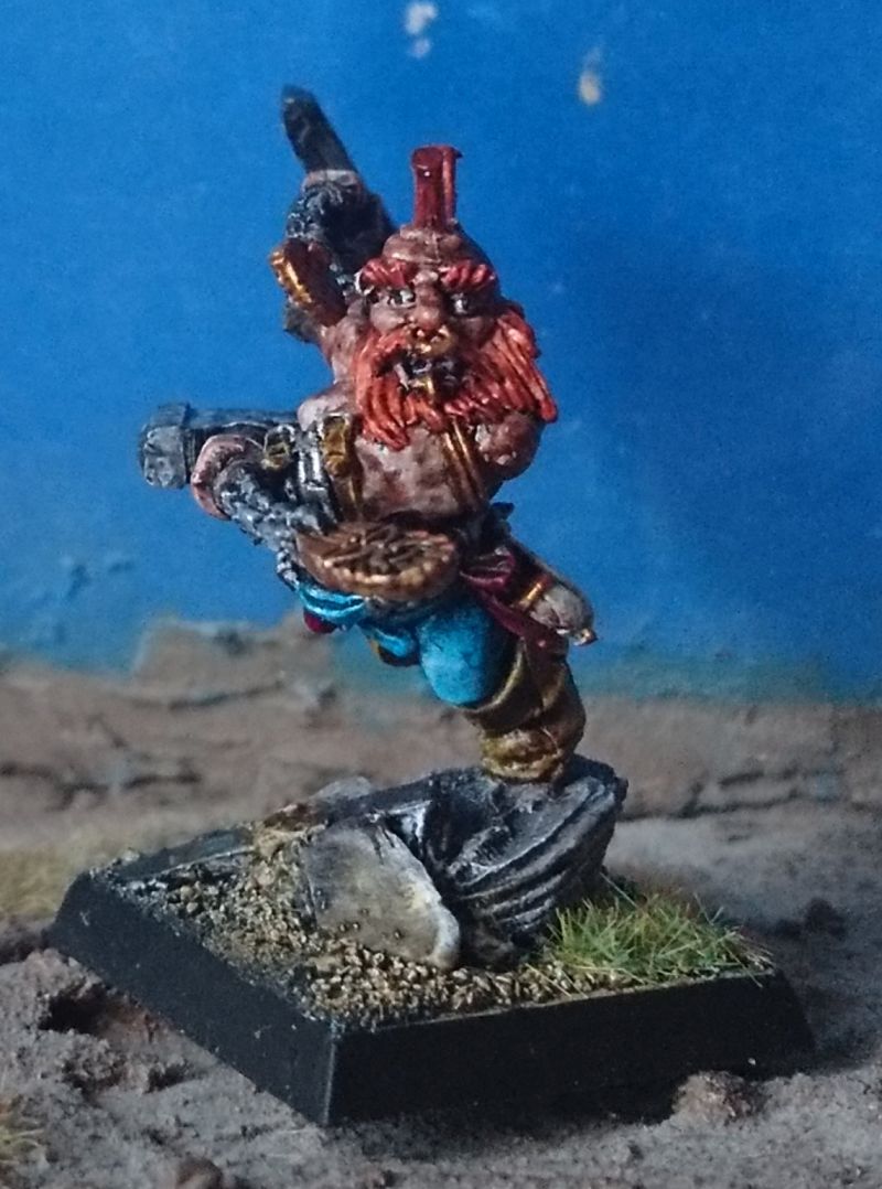 Unüblicherweise habe ich ihn als Slayer bemalt. Normalerweise kriegen die Minis einen weissen Bart.
