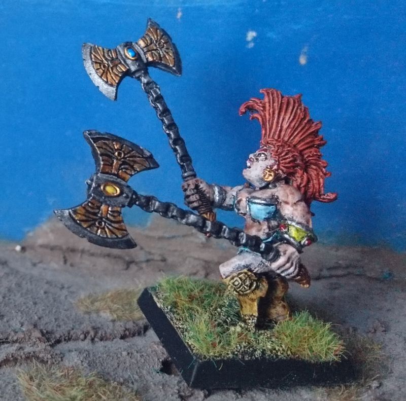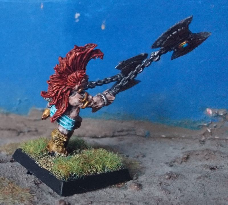 Die Dammaz Drengi gab es lange Zeit nicht zu kaufen. Diese Figur gab es bei einem alternativen Hersteller und zeigt einen weiblichen Slayer als Dammaz Drengi. Man kann diese Zinfigur aber auch mit zwei Einhandwaffen bzw. einer Zweihandwaffe bauen.