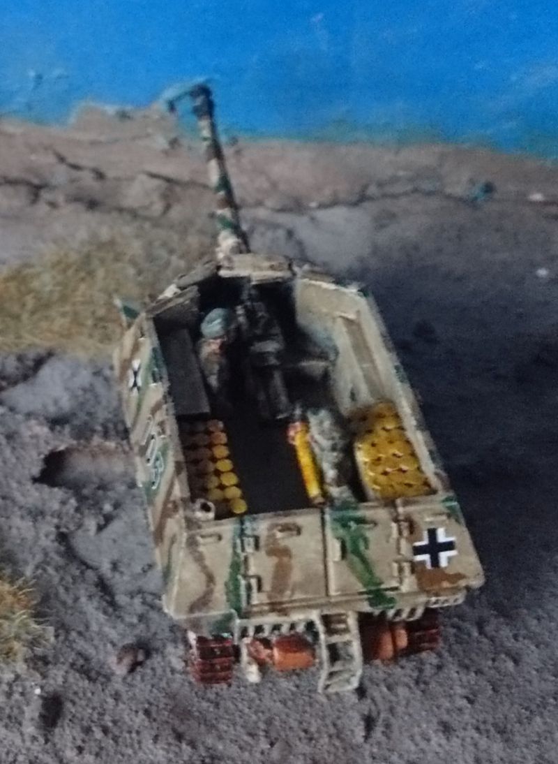 Die Crew wurde genauso bemalt wie die Infanterie. Künftig werde ich eher zu mehr Feldgrau übergehen.