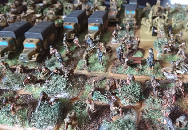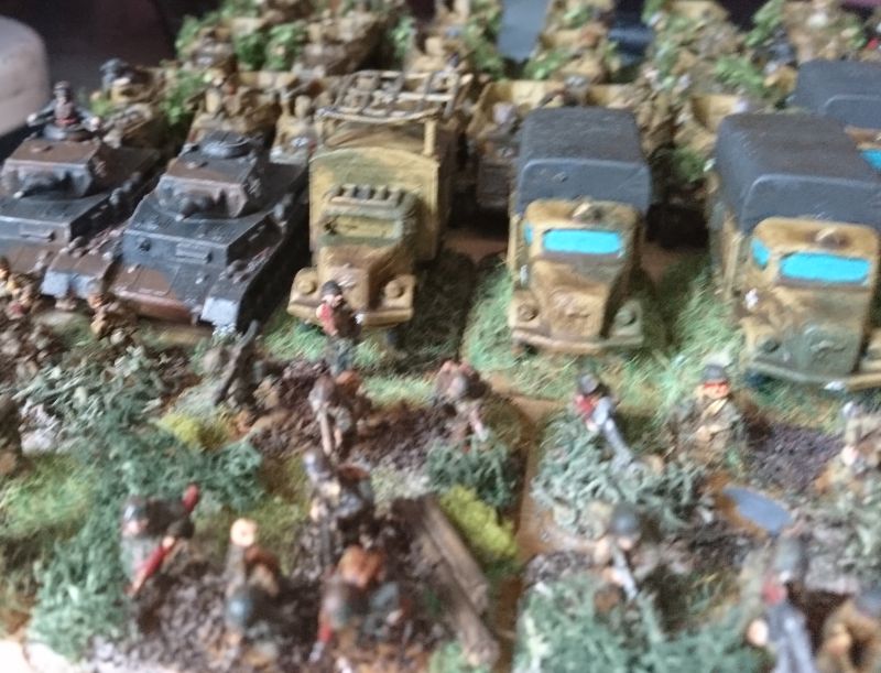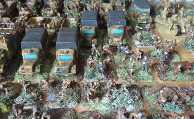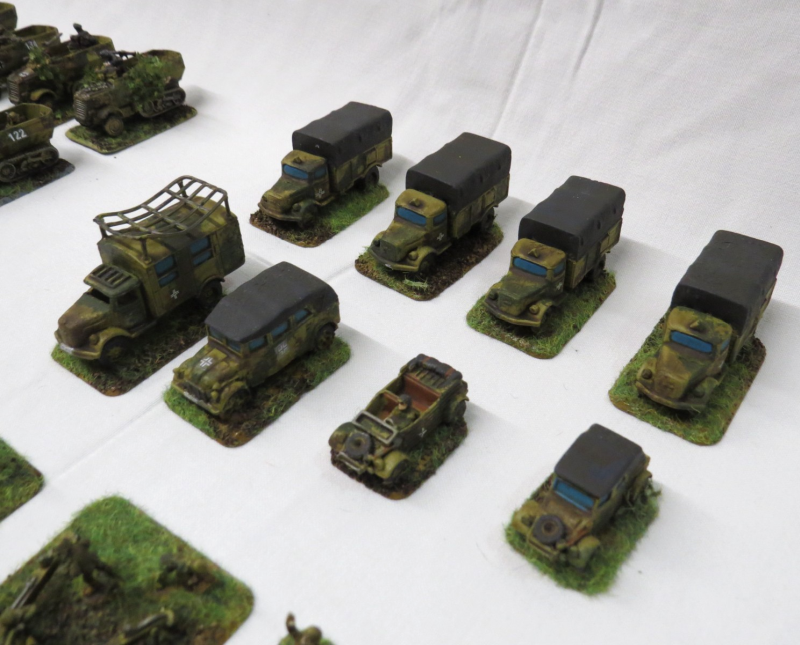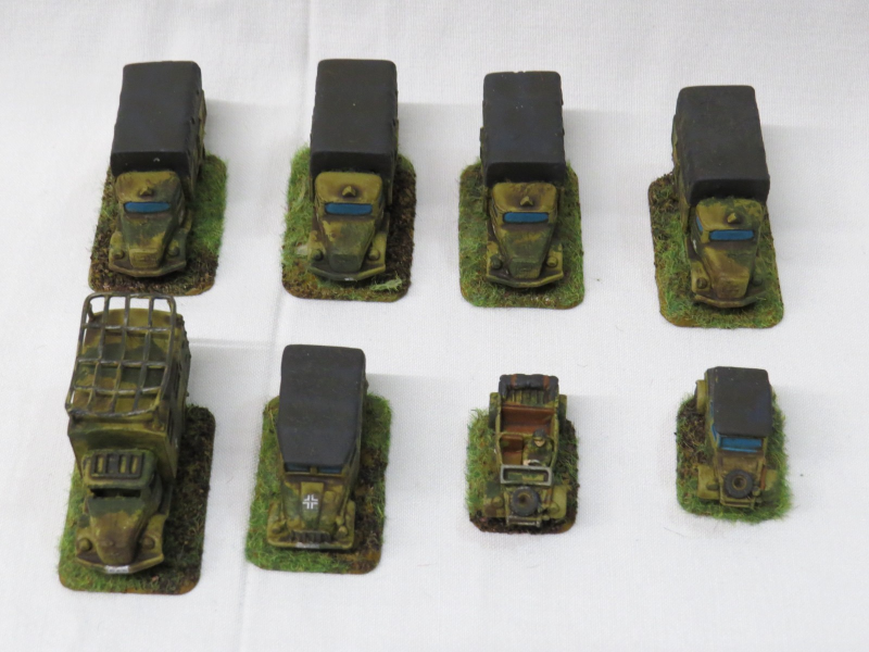 - 4x Opel Blitz (entweder als Transporter für Infanterie oder als Zugmaschine für die kleinere Ari / Pak)