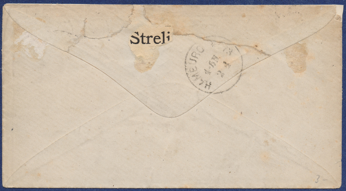 Entwertet wurde die Briefmarke durch den K1 -Stempel der Hamburger Post-Expedition 5 am 02.04.1873 zwischen 03 und 04 Uhr Nachmittags.