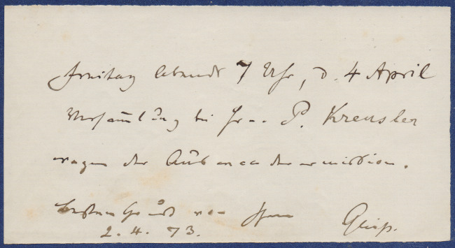 Der Ankunftstempel vom 02.04.1873 zeigt das der Brief schon eine Stunde (4-5 Uhr Nachmittags) nach Aufgabe Zustellpostamt angekommen und deren Ankunft bestätigt wurde. Innerhalb also eines Tages innerhalb kürzester Zeit dürfte der Empfänger den Brief erhalten haben.