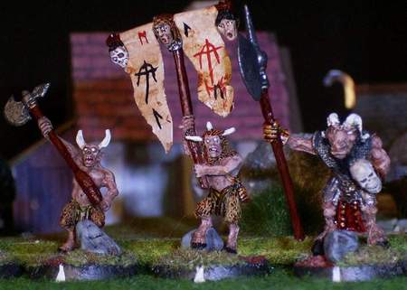 Meine Armee wird so aufgebaut, das sie in den Punktgrößen 500, 1000 und 1500 Punkten gespielt werden kann. Dabei stellten 1.000 Punkte reine Tiermenschen dar, während die restlichen 500 Punkte Skelette und ein Zauberer sein sollten.