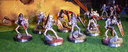 Erstgeborenen Skelette - Wird ein Sterblicher getötet, kann er durch einen Nekromanten als Skelett wiederbelebt werden. Sie kämpfen dann mit den gleichen Waffen und Ausrüstung wie zu ihrem Zeitpunkt ihres Todes weiter.