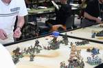 Kurz gesagt, fast alles was in Verantwortung der Spieler lag (Armeen, Spielverhalten, usw.), war gut bis erstklassig. Fast alles was in die Verantwortung von GW gehörte war eine Katastrophe (ausgenommen die Platten und der Spielraum /-Ort). Das gipfelte in zwei Sachen: