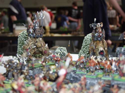Eine der Tiermenschenarmeen bestand aus 12 Streitwagen, dem besonderen Charaktermodell Morghur und vielen Chaoshunden, sowie Gorherden. Diese Armee, welche von einem GW Mitarbeiter geführt sein soll, wurde von vielen Gegenspielern als unfeine Armee empfunden, was aber auch an der Spielart des Armeeinhabers liegen soll.