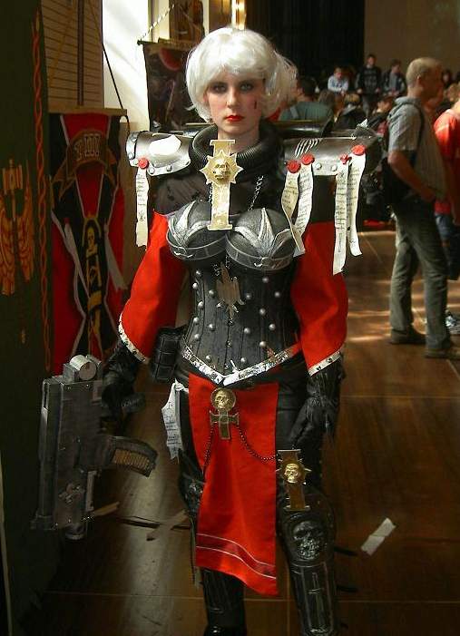 Wohl das häufigste Gesprächsthema über den GD im Moment sind überraschenderweise weniger die Figuren als der Gewandungswettbewerb aufgrund des mutigem Auftreten von vier weiblichen Teilnehmerinnen, die erhebliches Aufsehen erregten (siehe unten als Beispiel die Sororitas Schwester). Finde ich persönlich Klasse und tut unserem Hobby ohne Frage gut.