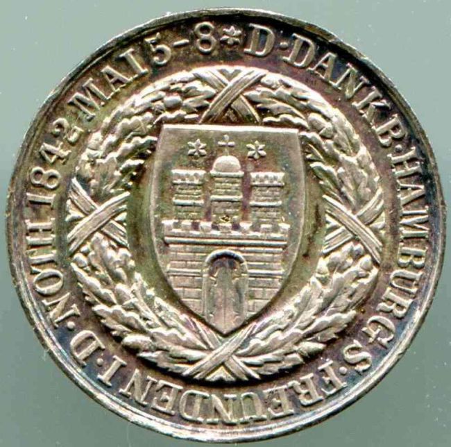 Kleine Hamburger Dankmedaille zum Stadtbrand von 1842