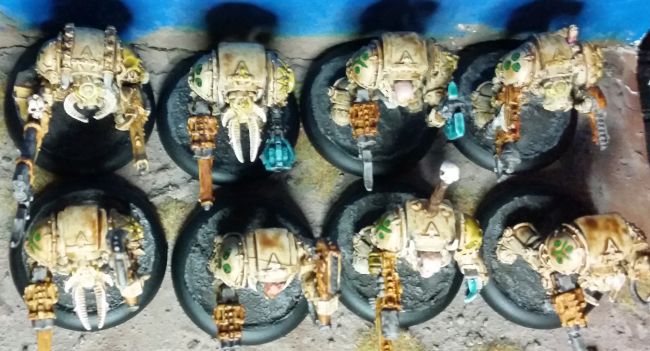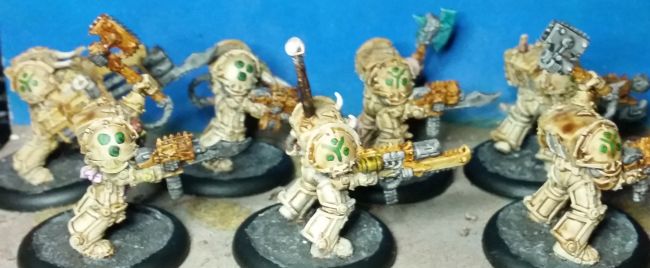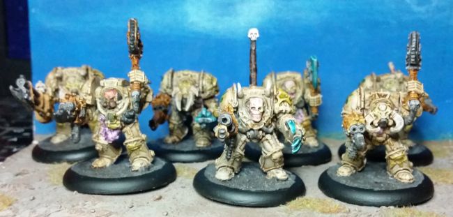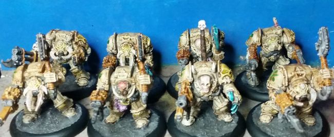 3x Terminator mit Kombiwaffe (Zwillingsbolter) und Kettenaxt, Mal des Nurgle = 51 + 20 = 71 * 3 = 213 Punkte