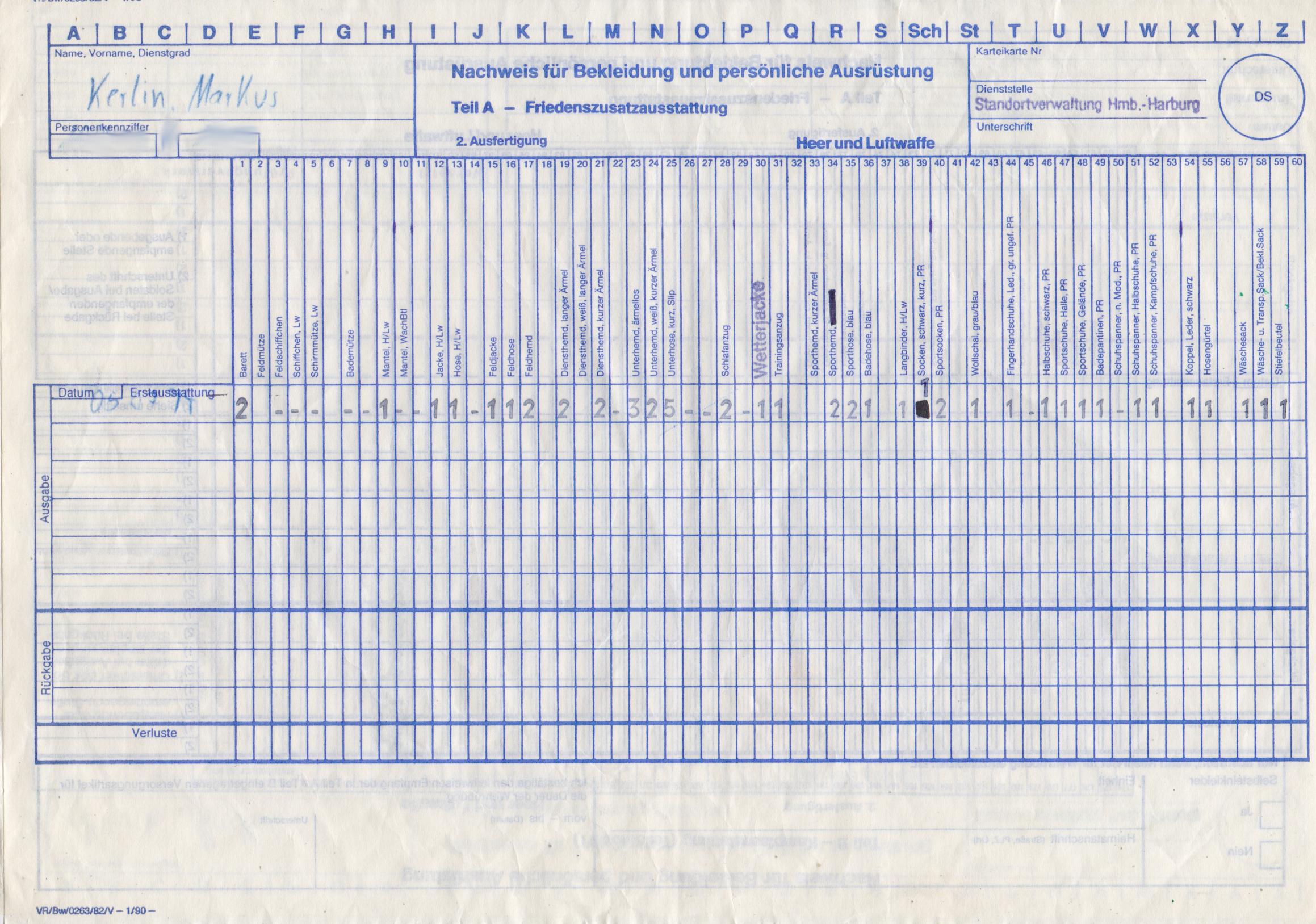 Da ich langfristig plane meine kleine Sammlung vorzustellen und auch vervollständigen möchte, stelle ich heute die drei Seiten aus meiner Bekleidungstammkarte aus Mitte 1994 vor.