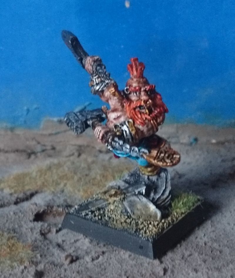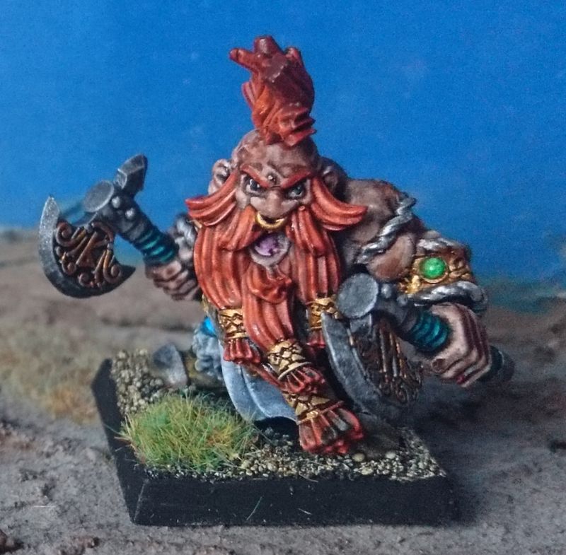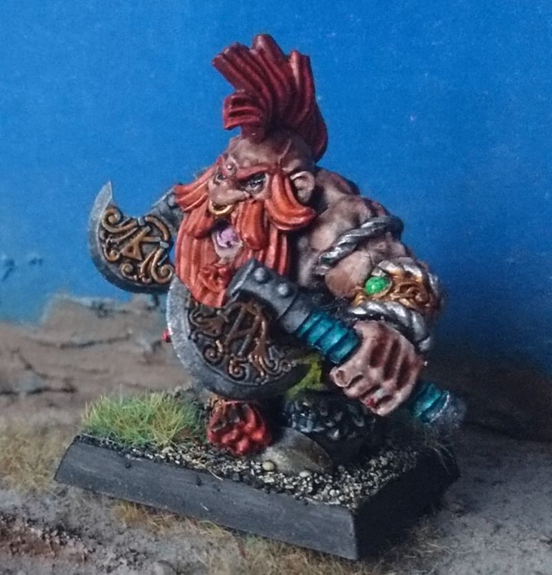 Unüblicherweise habe ich ihn als Slayer bemalt. Normalerweise kriegen die Minis einen weissen Bart.