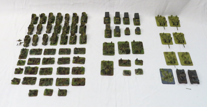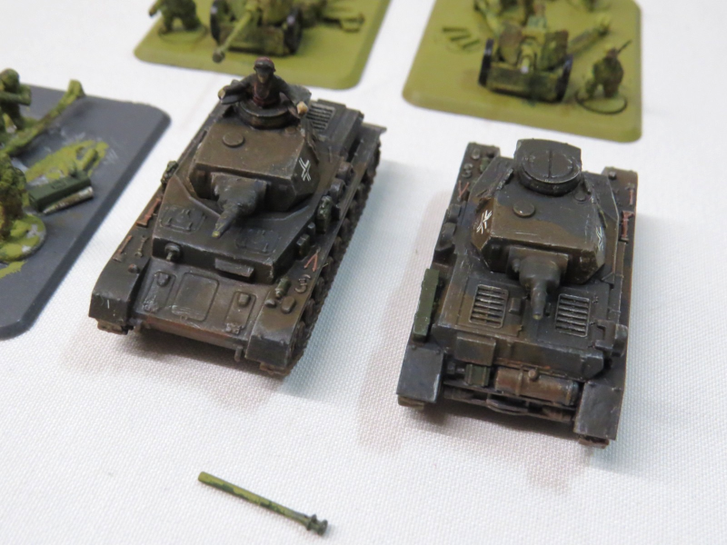 - 3x 7,5cm Pak 40 (eines mit gebrochenem Rohr). Sind aus Zinn.