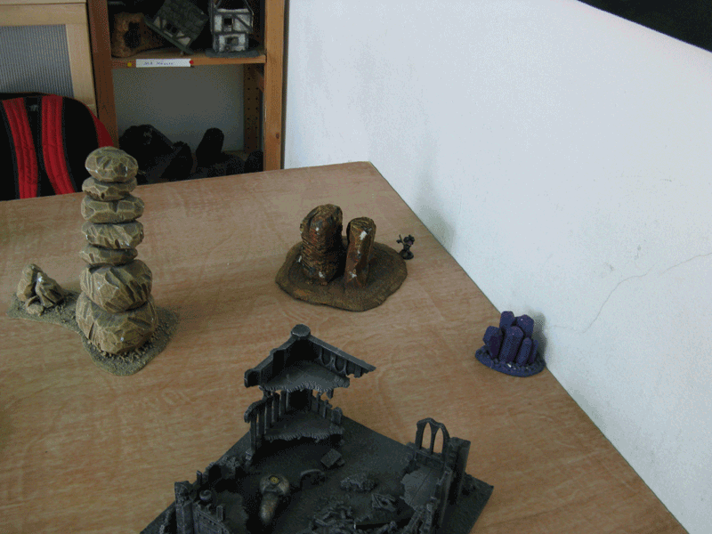 Spielfläche. Auf dem Hügel ist der eine Marker.