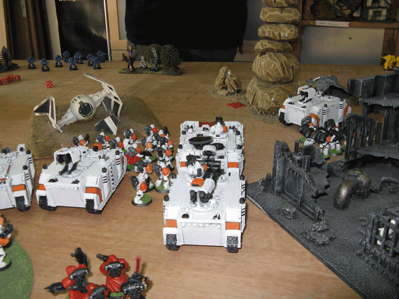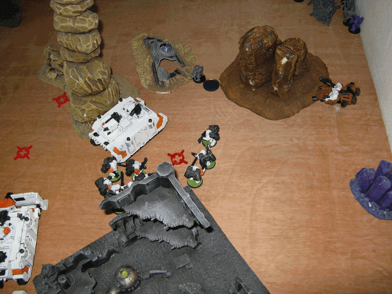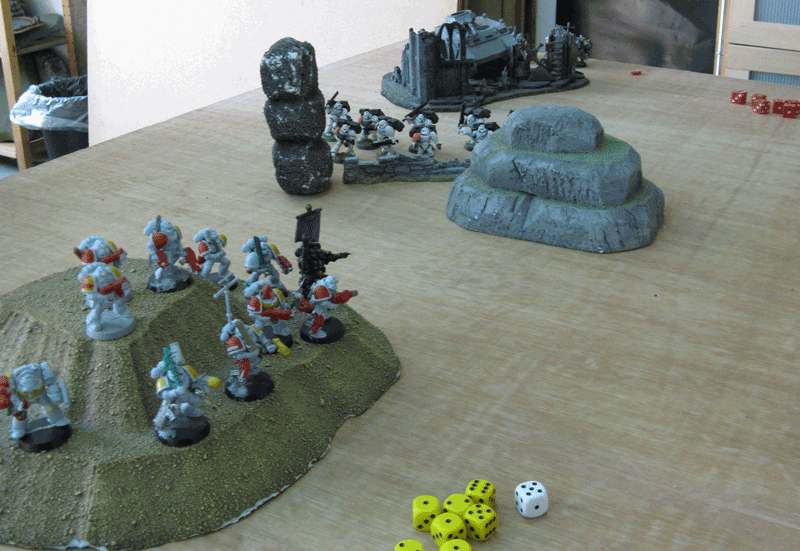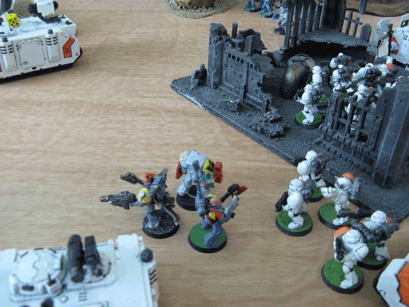 Im Endeffekt war das Spiel nach der verlustlosen Vernichtung seines Termi-Trupps vorbei. Ich blieb noch bis zu vierten Runde in einer defensive Position und schoss alles ab, was in Reichweite kam.
