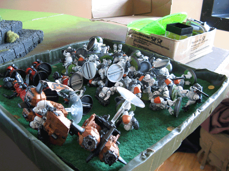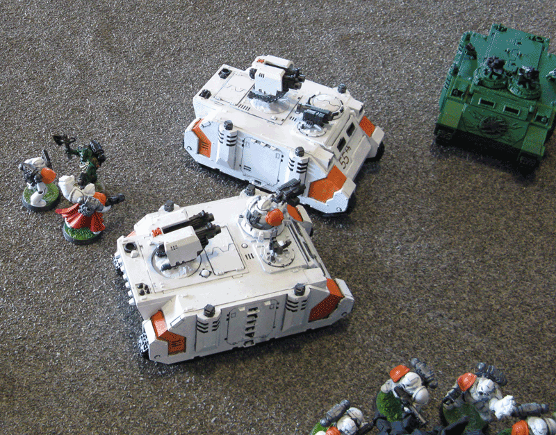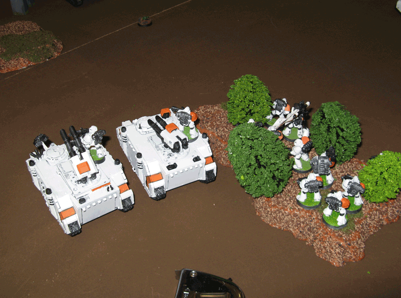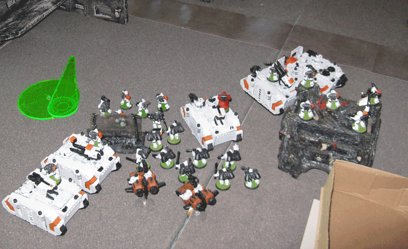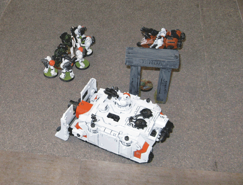 Meine Verstärkung. Ich hatte glatt vergessen meinen Sturmtrupp und die Speeder aufzustellen. Faiererweise erlaubte er es mir diese nachzuziehen. Dementsprechend packte ich sie einfach hinter meine Panzer.