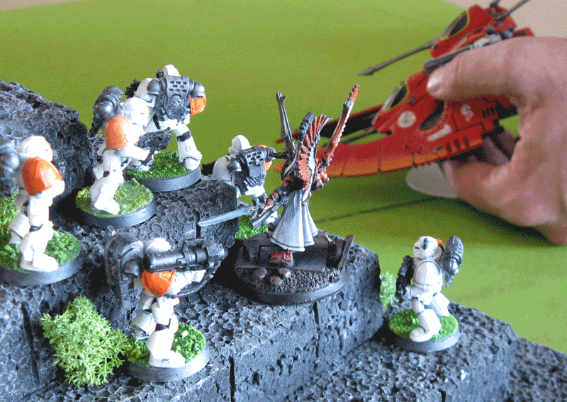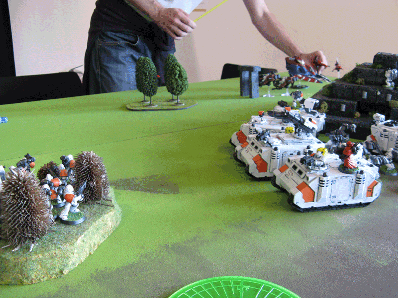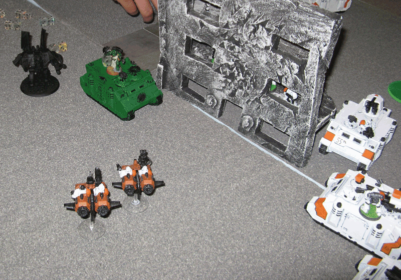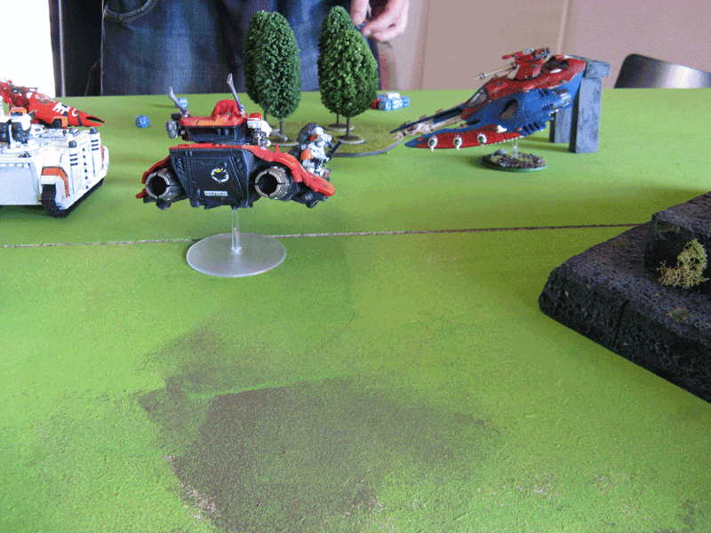 Meine Speeder versuchen ein paar Eldar zu vernaschen, was nur bedingt gelingt.
