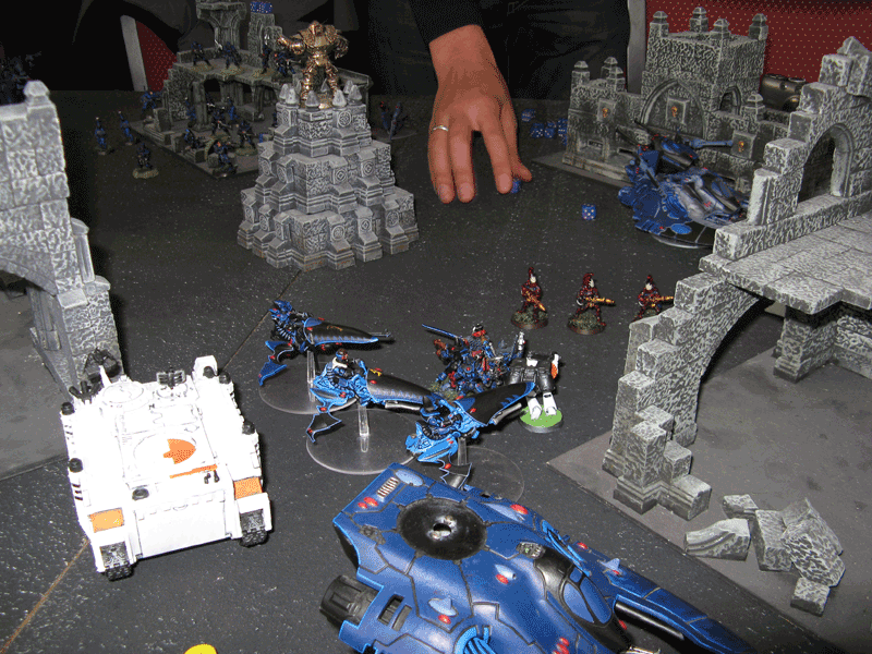 Ich sah praktisch von der ersten Sekunde an keinen Stich gegen seine Eldar unter der Führung von Uldreth. Insbesondere seine Psi-Fähigkeiten, die ich mit meinem Sciptor nicht einmal bannen konnte, waren arg böse und von mir nicht stopbar.