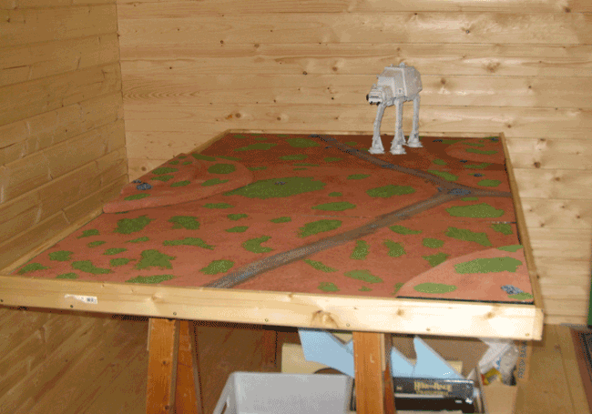 Nachdem ich den oberen Stand erreicht hatte, entschloss ich mich schnell die Spielflächen noch ein paar lose Hügel zu ergänzen die passend zur aufgemalten Straße sind.