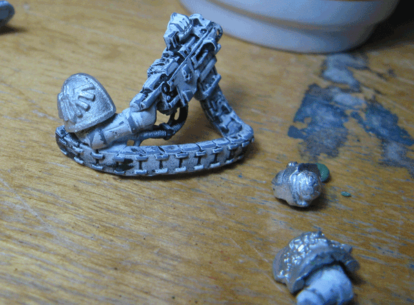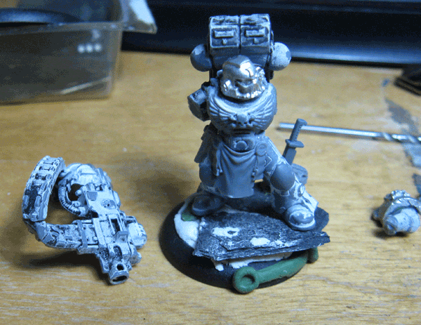 Da ich leider keine losen aktuellen Space Marine mehr hatte, nahm ich einen der Heavy Bolter Figuren aus meinem