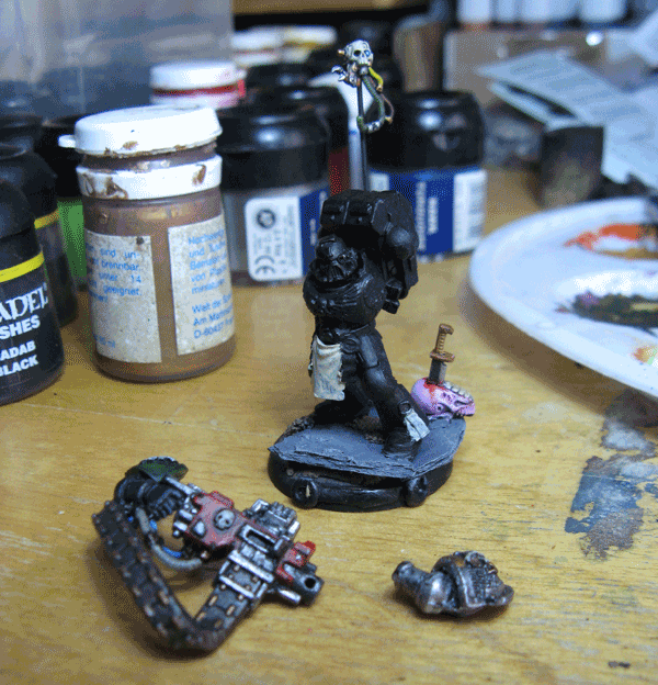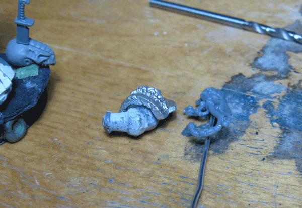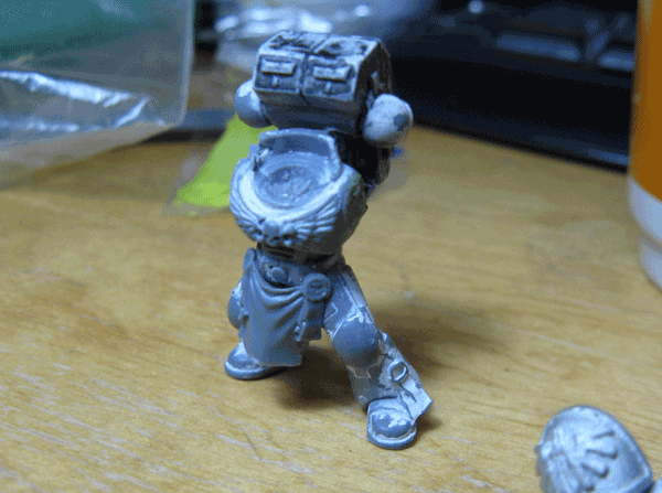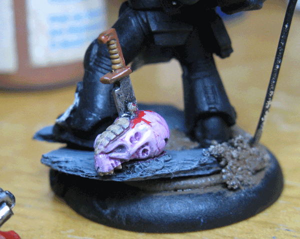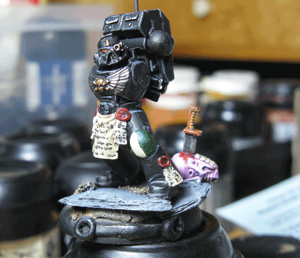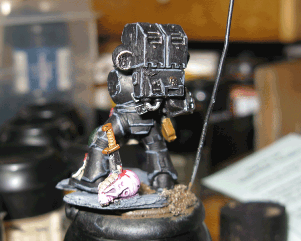 Problematisch war insbesondere die Positionierung des Kopfes, da das Schulterpad der Deathwatch einen hohen Kragen hat.