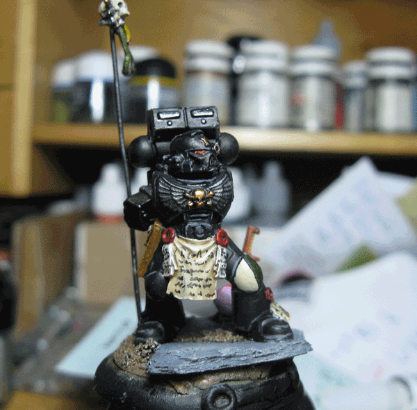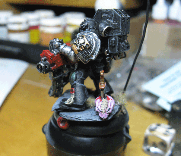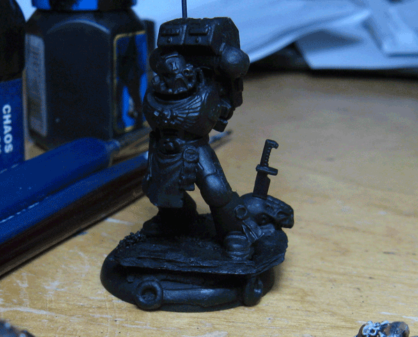 Grundiert wurde die Figur in schwarz, da die Primärfarbe bei Deathwatch halt schwarz ist.