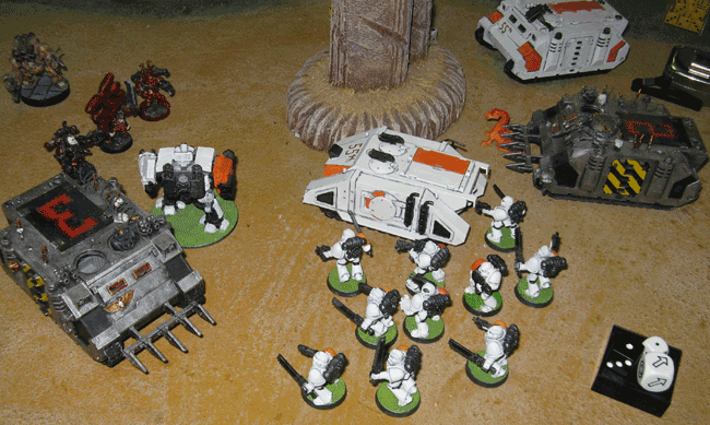 Diese führte ich dann in einem Viererkampf gegen zwei dem Bösen verschriebenen Chaosspace-Marine Armeen.