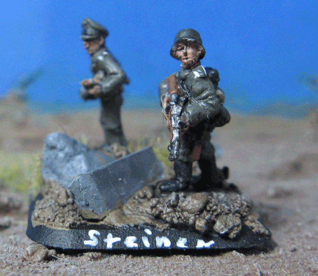 Felix Steiner ist ein Oberleutnant im Nachschub, im Kampf um Cassino unerwarteterweise zu einem Infantery-Ace motierte.Ich habe die Figur extra für die Kampagne gebastelt und bemalt.