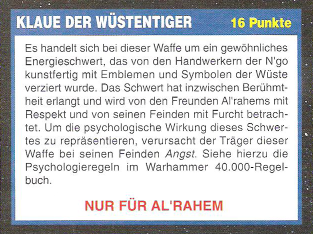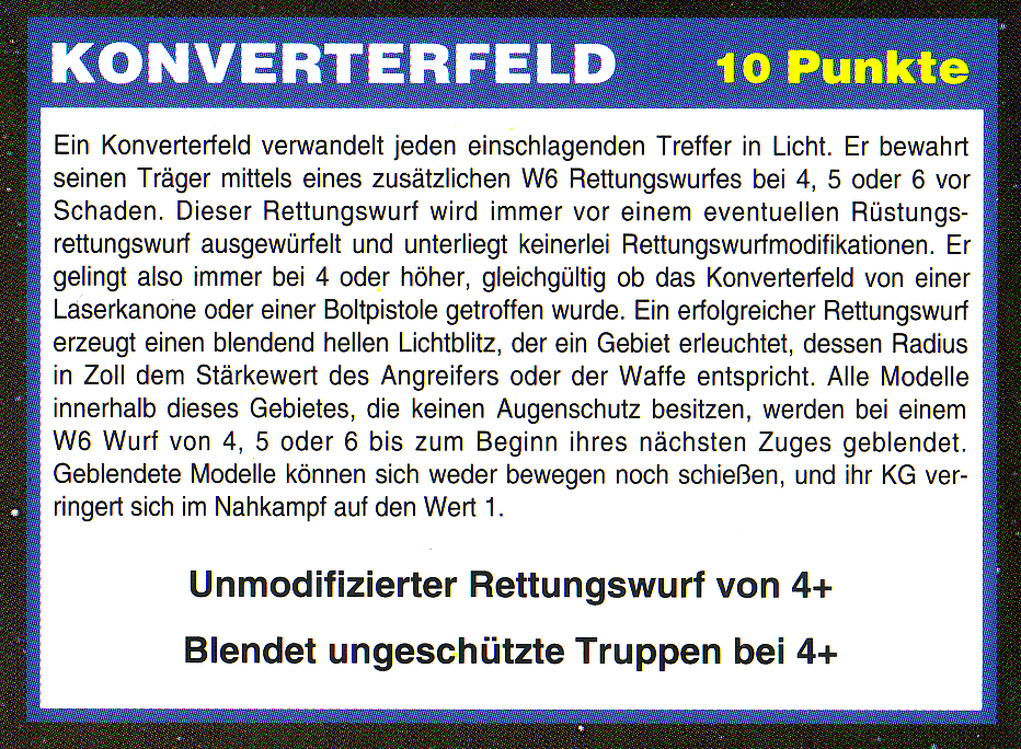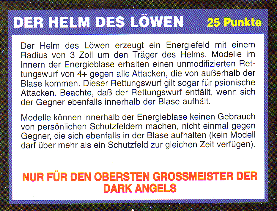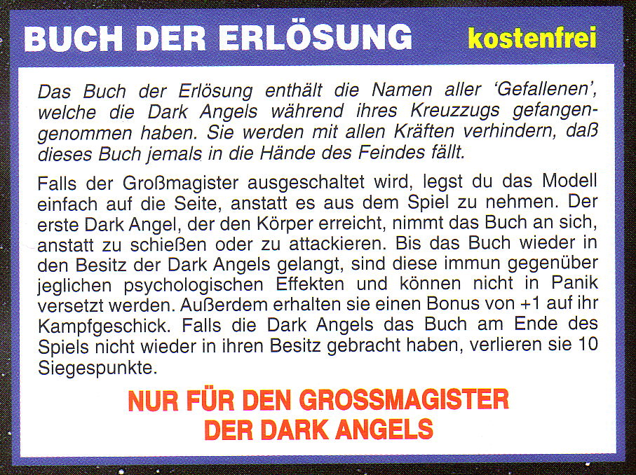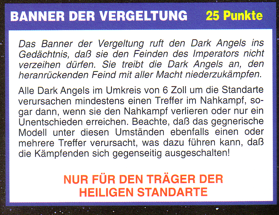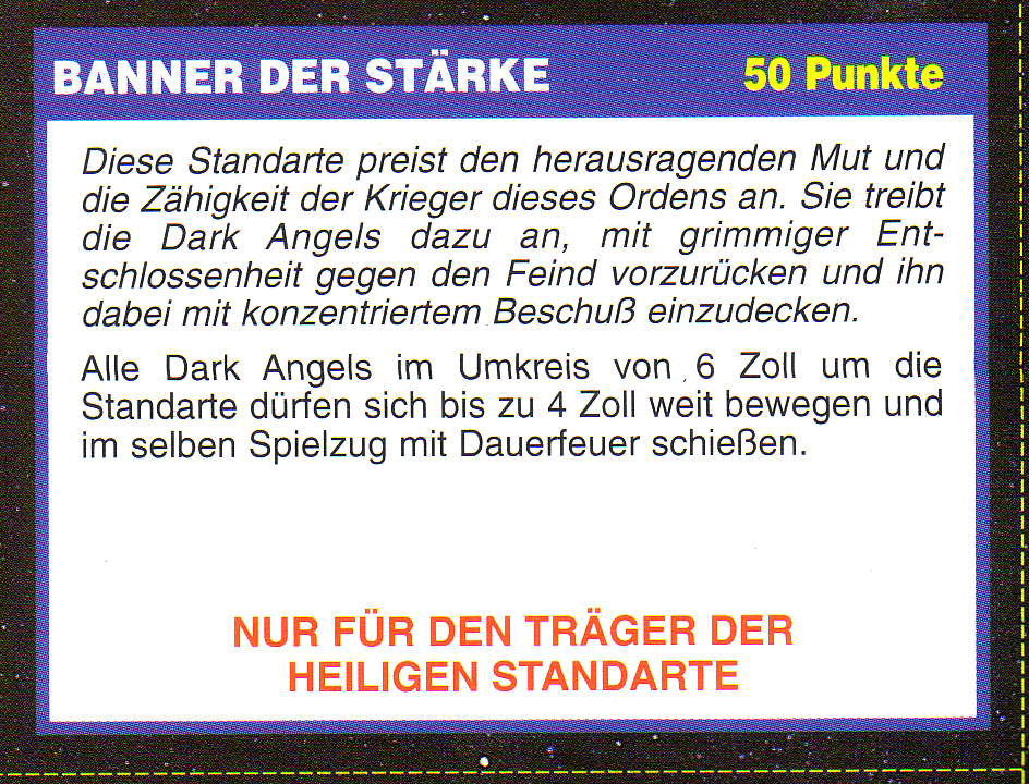Ausrüstungskarten die nur von den Dark Angels genutzt werden dürfen.