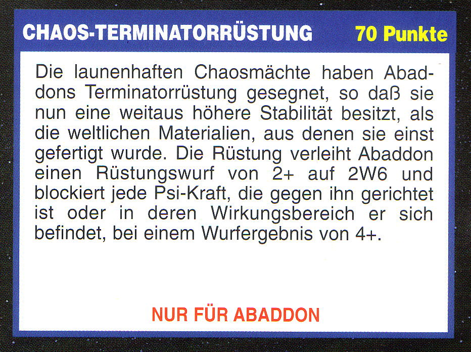 Ausrüstungskarten die nur vom Chaos genutzt werden dürfen.