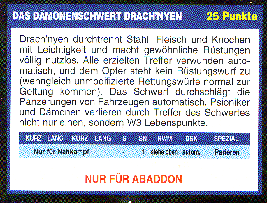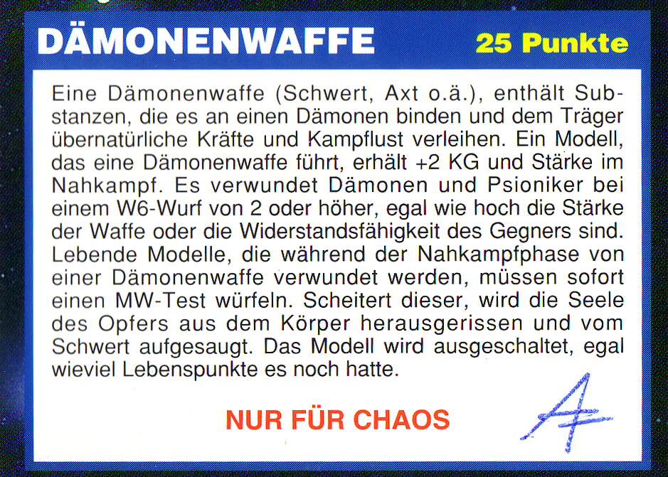 (Bei Chaos fehlt die Ausrüstungskarte: Dämonenwaffe) |