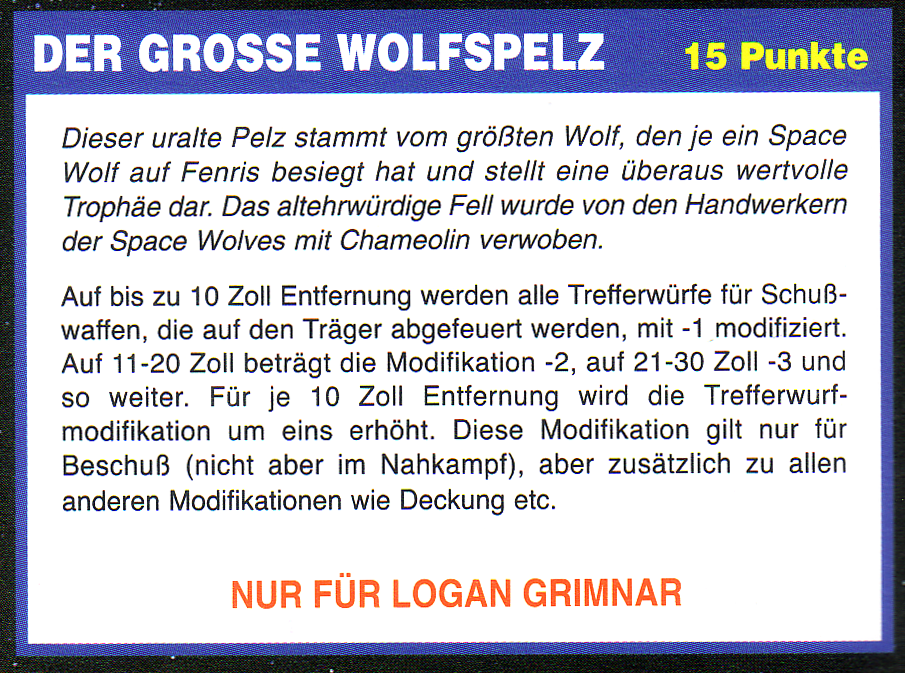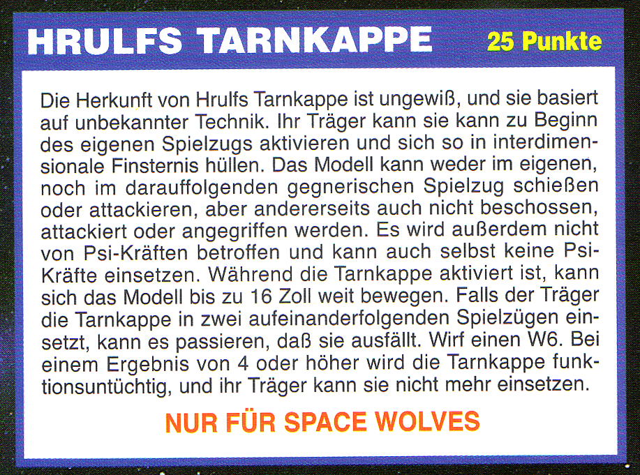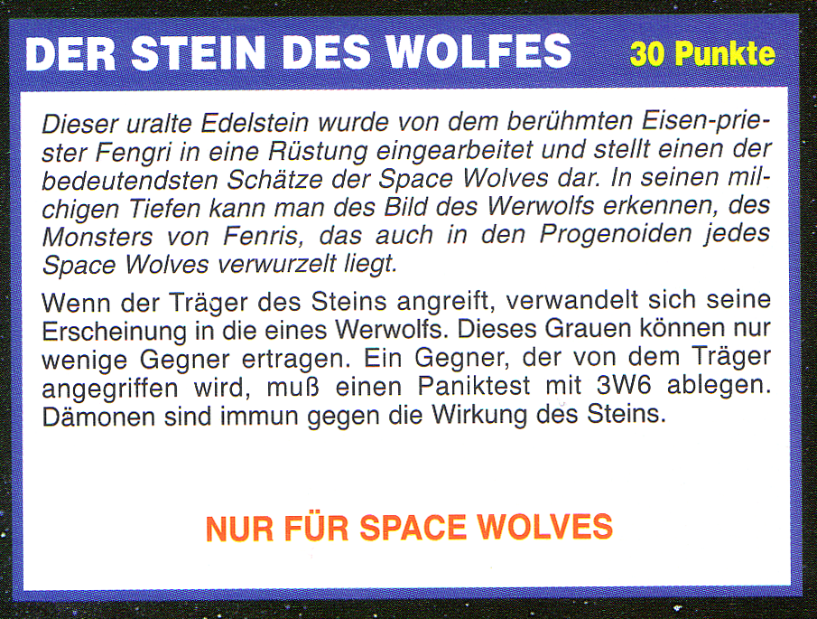 Ausrüstungskarten die nur von den Space Wolves genutzt werden dürfen.