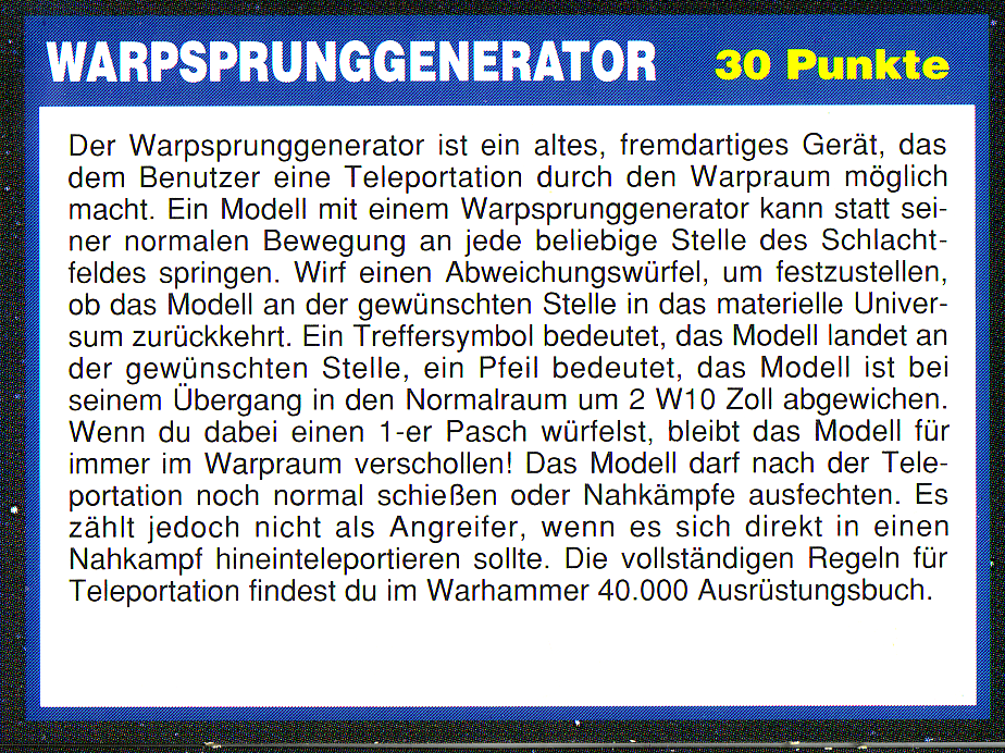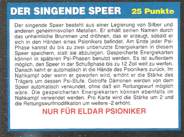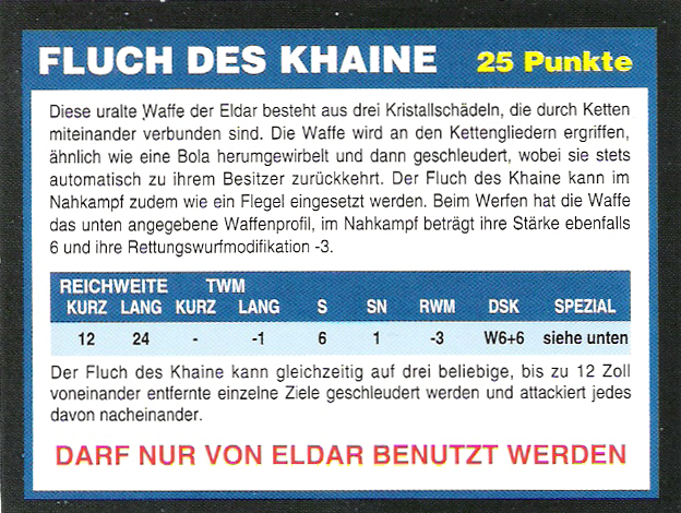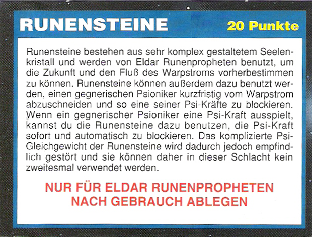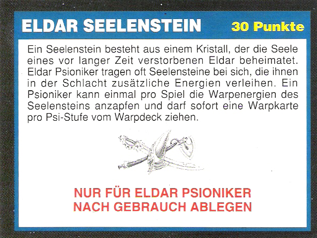 Ausrüstungskarten die nur von den Eldar genutzt werden dürfen.