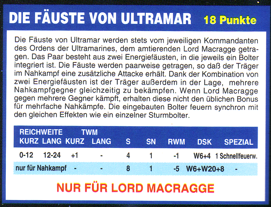 Ausrüstungskarten die nur von den Ultramarines genutzt werden dürfen.