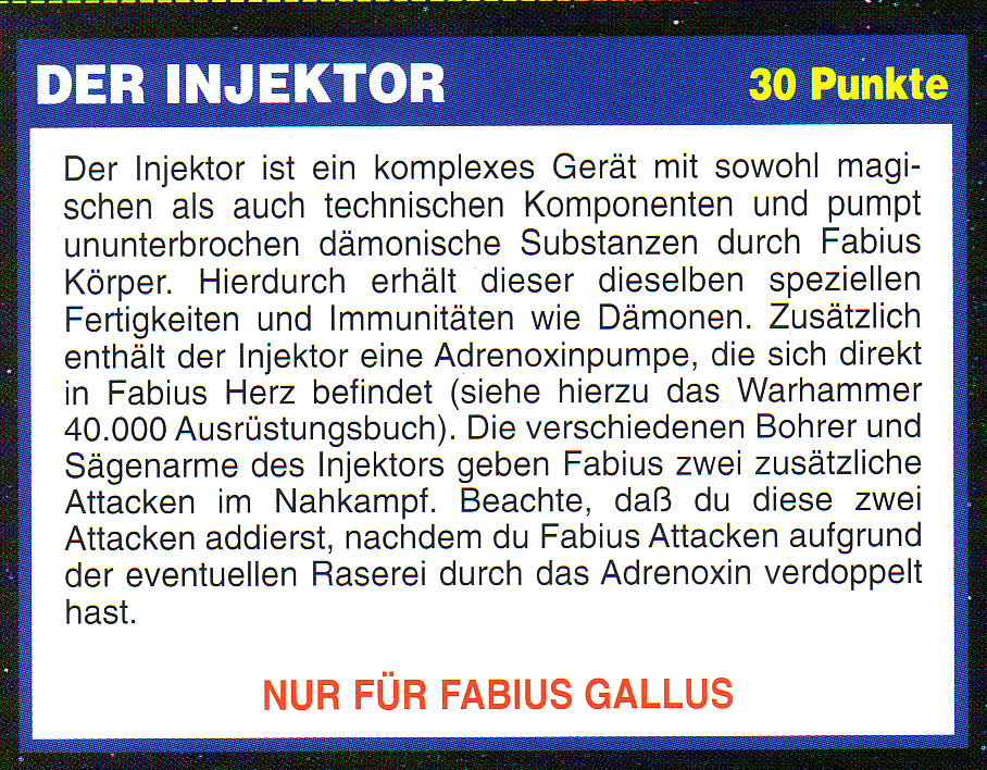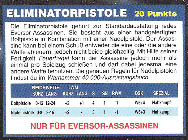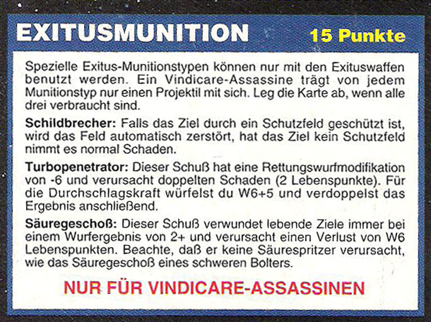 Ausrüstungskarten die nur vom Culexus Assassin genutzt werden dürfen.