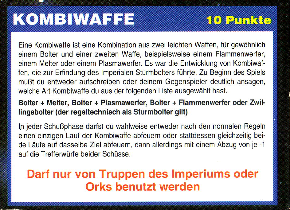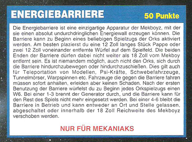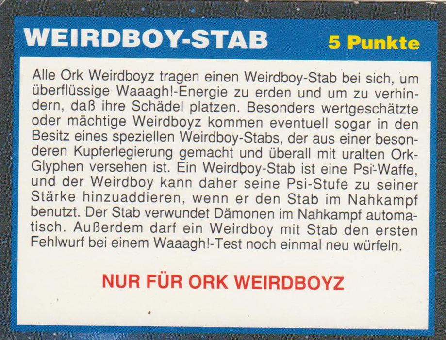 Ausrüstungskarten die nur von den Orks genutzt werden dürfen.