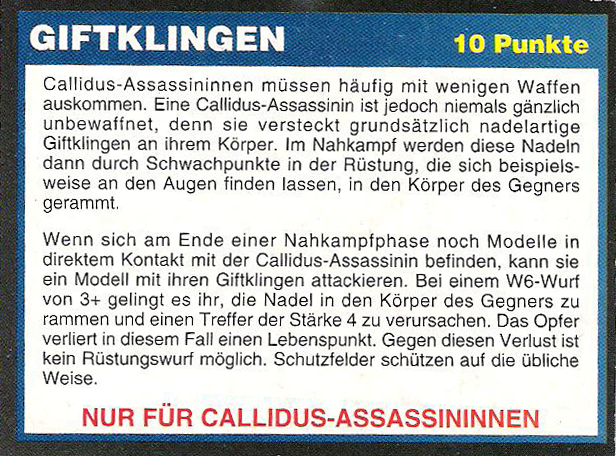 Ausrüstungskarten die nur vom Callidus Assassin genutzt werden dürfen.