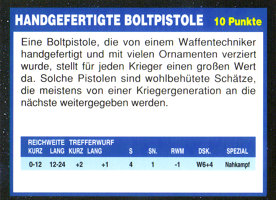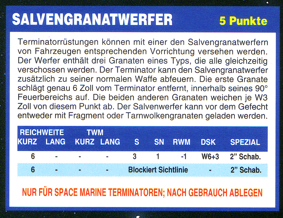 Ausrüstungskarten die nur von den Space Marines genutzt werden dürfen.