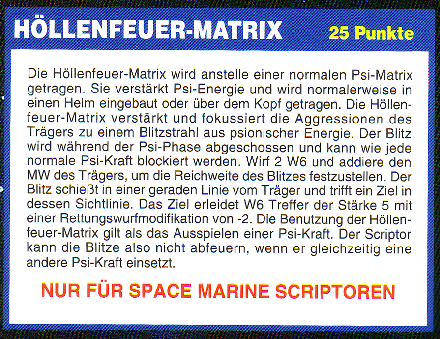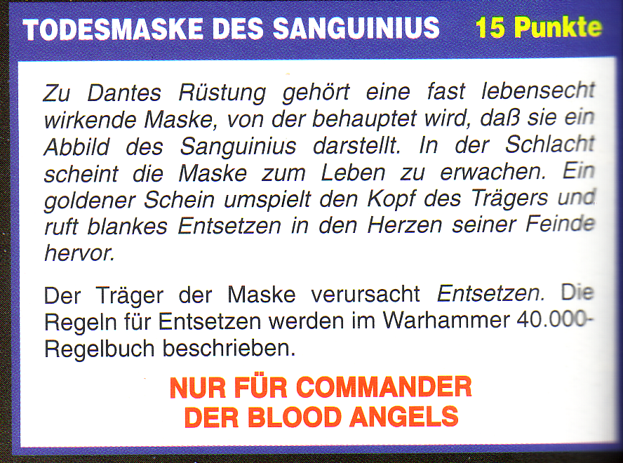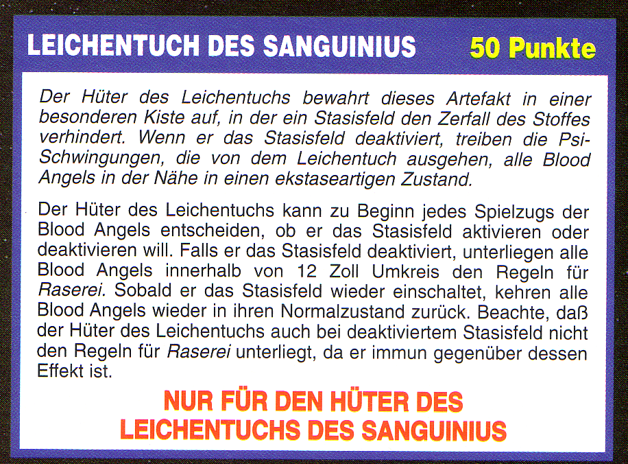 Ausrüstungskarten die nur von den Blood Angels genutzt werden dürfen.