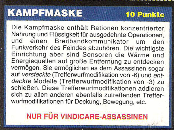 Ausrüstungskarten die nur von den Assassinen genutzt werden dürfen.