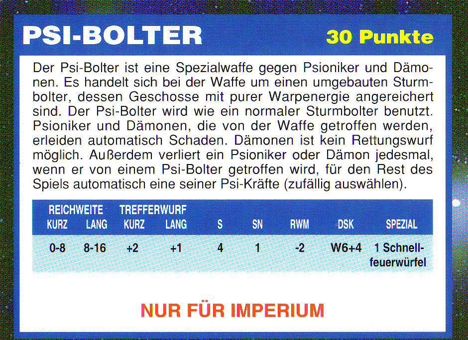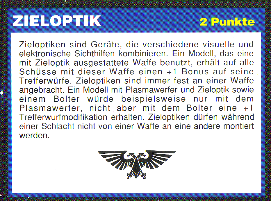 Ausrüstungskarten die nur von dem Imperium treuen Armeen genutzt werden dürfen.
