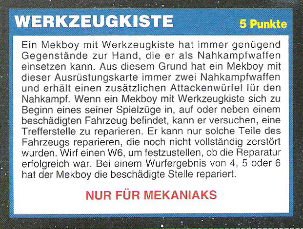 Ausrüstungskarten repräsentieren spezielle Ausrüstungsgegenstände, die Charaktermodellen vorbehalten waren.