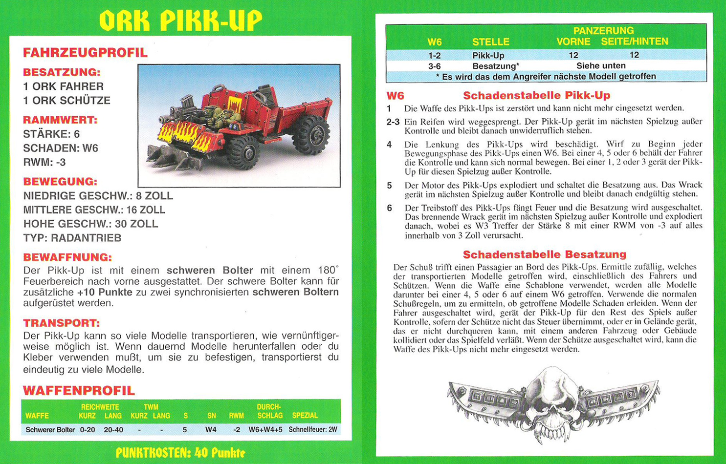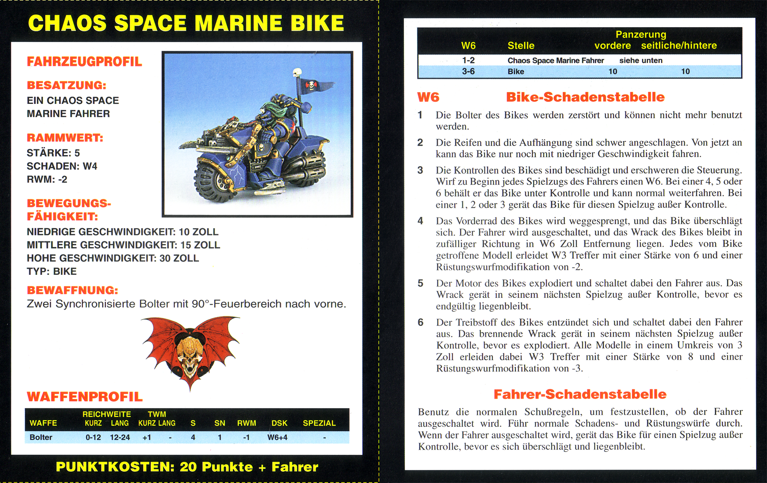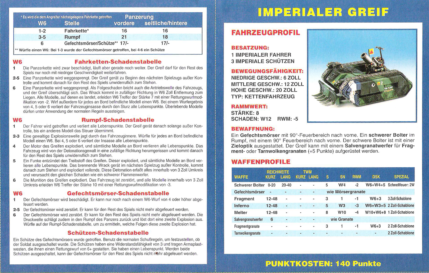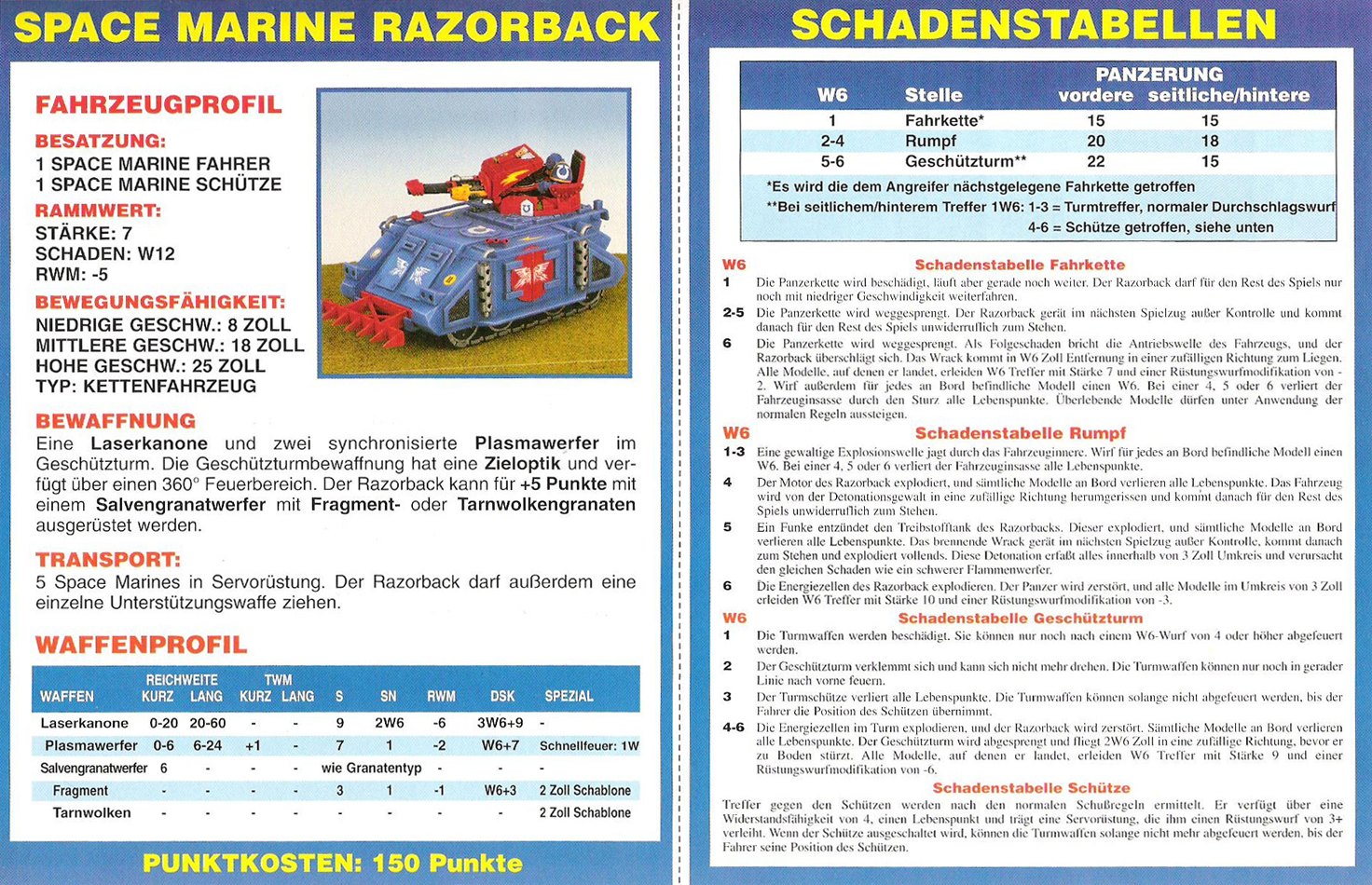 FAQ: 2nd Edition hat einen seeehr langen FAQ/Errata, hier muss man aber ein wenig vorsichtig sein, manches ist veraltet (bspw. Noisemarines, die Ausführungen beziehen sich auf die Regeln aus dem Black Codex, der Codex Chaos hat diese dann aktualisiert). Norton hatte bei mir btw. mal wegen der Seite gemeckert, obwohl nie etwas versucht worden ist (ich teile auf, weil Links nicht erlaubt sind). Einiges ändert hier grundlegendes (Modelle dürfen aus fahrenden Fahrzeugen chargen, was eigentlich der Reihenfolge nach unmöglich ist, Gunner von Fahrzeugen dürfen Overwatch nutzen, wenn das Fahrzeug fährt, etc). Hmm, hilft nichts, mit der url herumzuspielen, gehe mal ins Eastern Fringe Forum (gute Wahl für 2nd), dort in die 2nd Edition Abteilung und suche auf der zweiten Seite nach dem FAQ Thread von mir. |