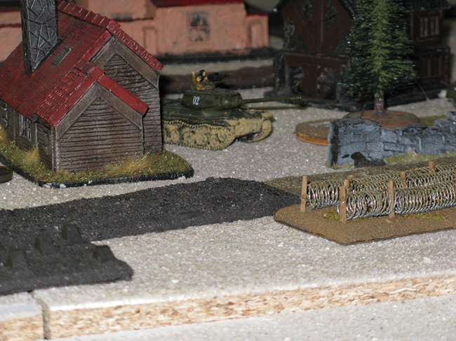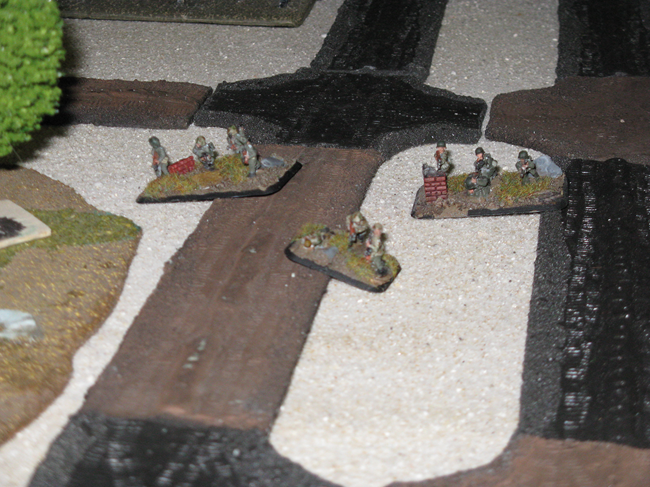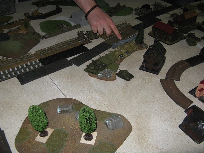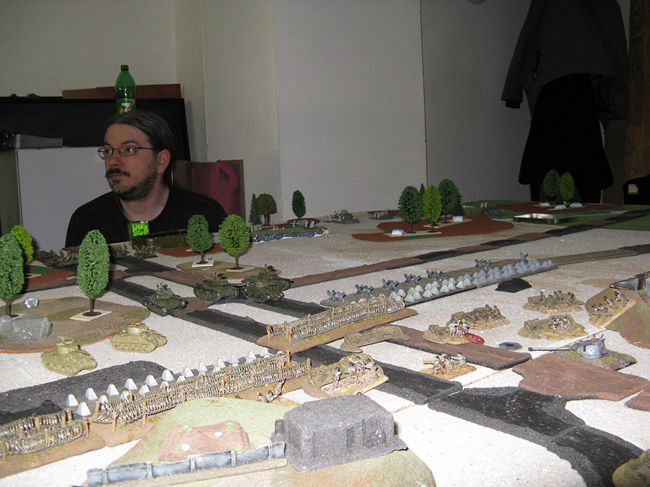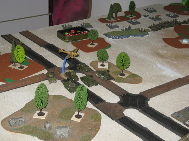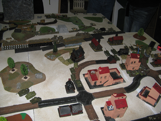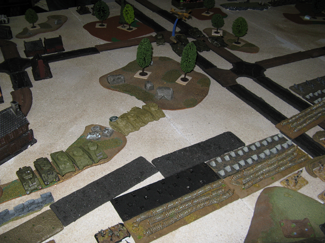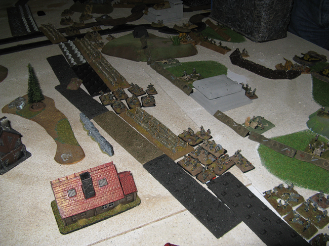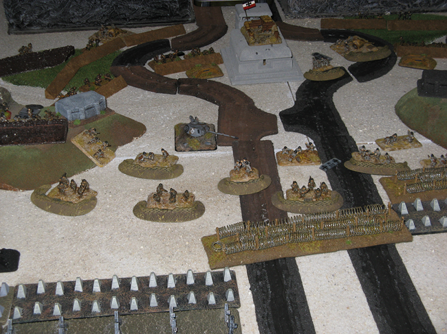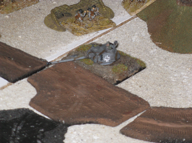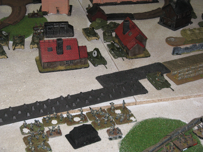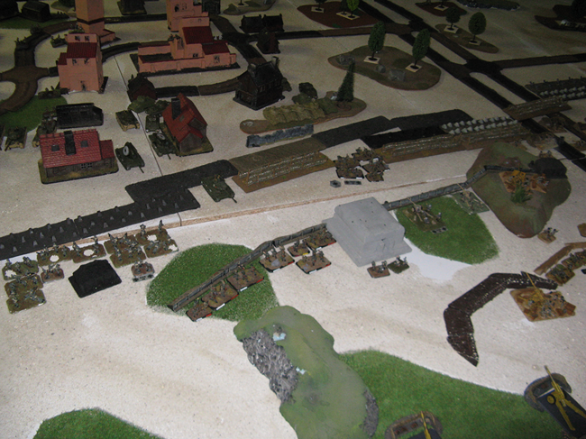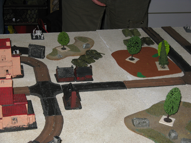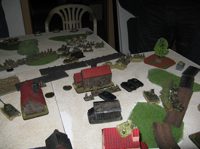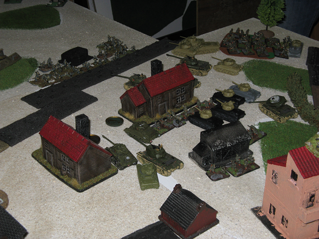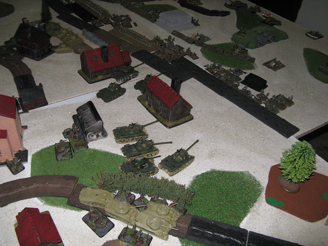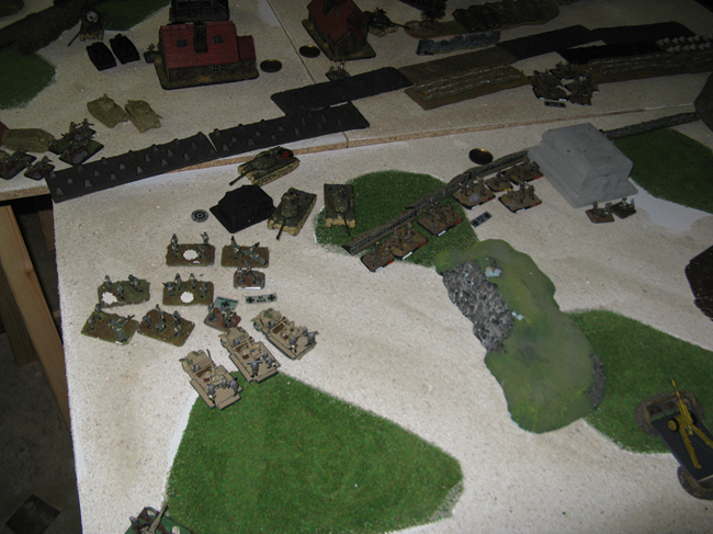Nun hatte auch mein Pantherturm (links von der Strasse hinter der Infanterie) etwas zu tun. Die Base hatte ich extra für das Spiel vorbereitet.
