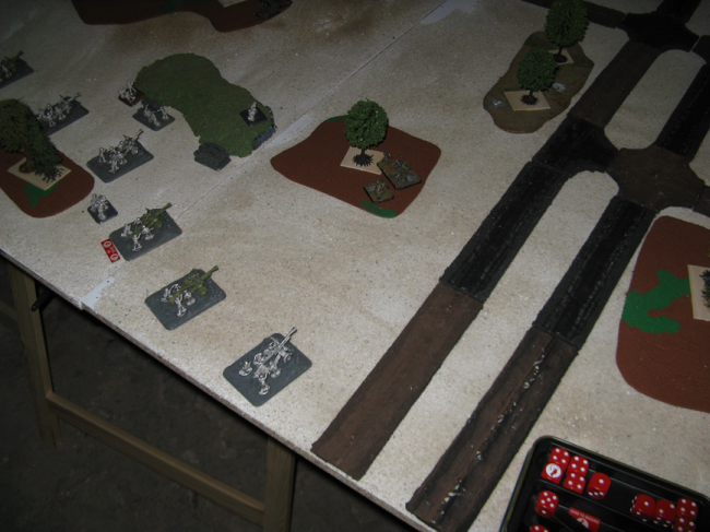Die Deutschen stellten in Erwartung eines Angriffes im Norden und über die Strasse einen Großteil seiner Rohrwaffen (Ari und Paks) im Süden auf, um im Norden eine Falle zu stellen.