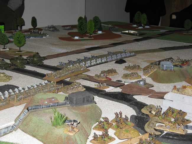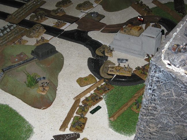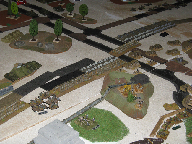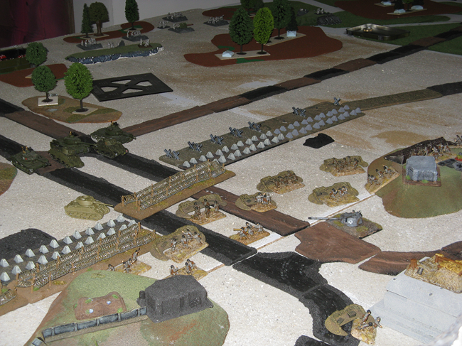 Fazit: Die Befestigungsanlage , insbesondere der Panzersperren und Minenfelder, hatten eine zu starke Wirkung für den Spielablauf. Ob ein aggressiver Angriff durch die Mitte erfolgsversprechender gewesen wäre war dann noch Gegenstand der späteren Diskussion.